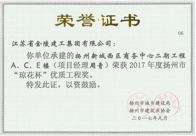 揚(yáng)州市“瓊花杯”優(yōu)質(zhì)工程獎(jiǎng)