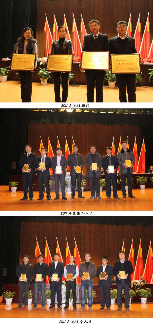 2011年12月31日下午2點整,江蘇省金陵建工集團生產工作暨2011年總結表彰大會在揚州會議中心隆重召開。 會上,張正山副書記宣讀了集團公司表彰決定并舉行頒獎儀式,分公司代表李忠祥、項目經理代表唐士兵和大學生代表王敏捷相繼進行了表態發言。綜合管理部、人力資源部、財務核算部、風險投資部、法律事務部、經營合約部、安全管理部、總工辦等部門相繼做了部門報告,對2011年度工作進行了總結,對2012年的工作提出了具體要求。