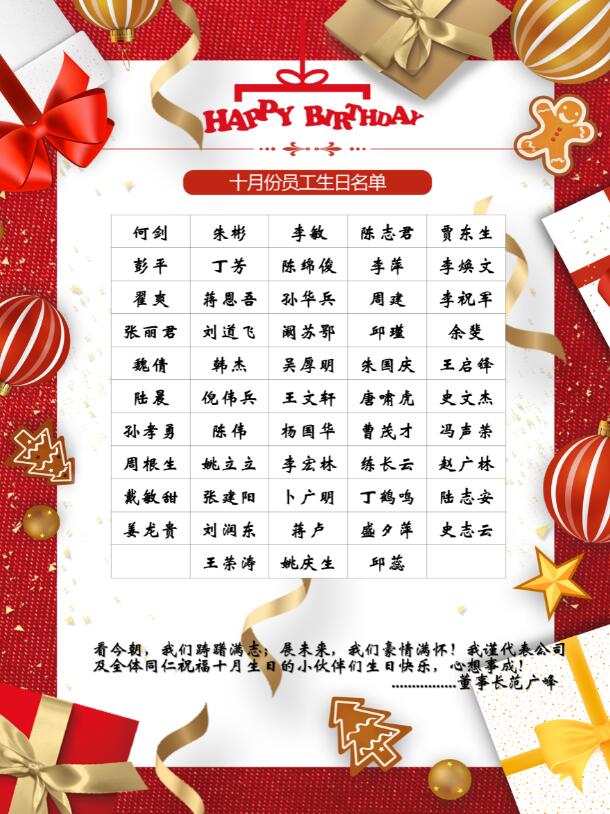 【生日祝福】恭祝10月生日的員工生日快樂(lè)!