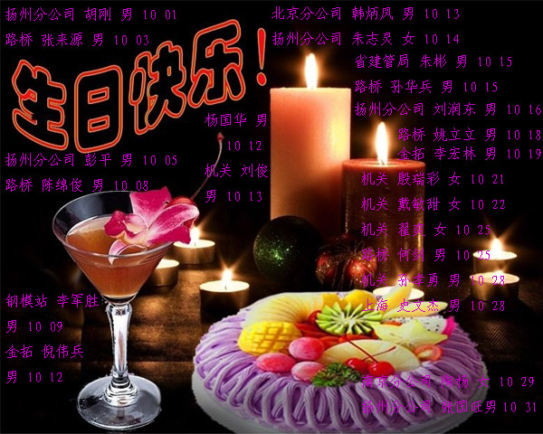 祝賀10月過生日的員工生日快樂