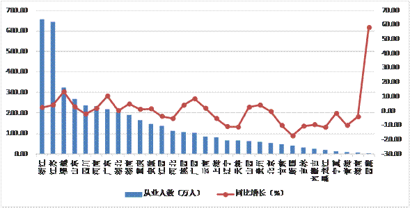 圖5 2018年上半年各地區建筑業從業人數及增速
