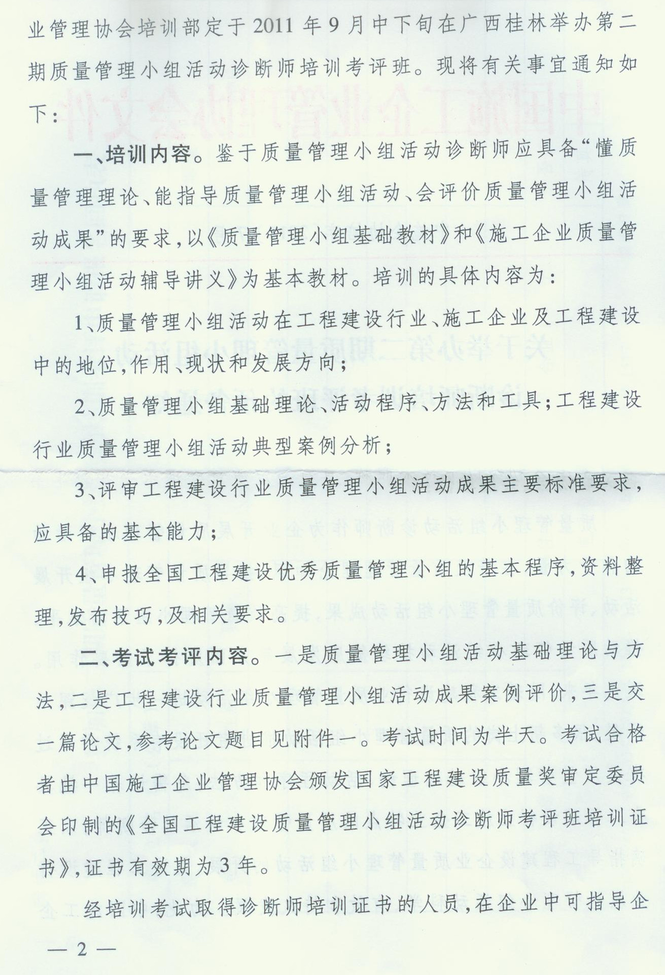 關于舉辦第二期質量管理小組活動診斷師培訓考評班的預備通知