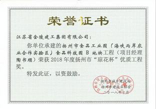 公司承建的揚(yáng)州食品工業(yè)園項(xiàng)目榮獲2018年度揚(yáng)州市優(yōu)質(zhì)工程獎(jiǎng)“瓊花杯”
